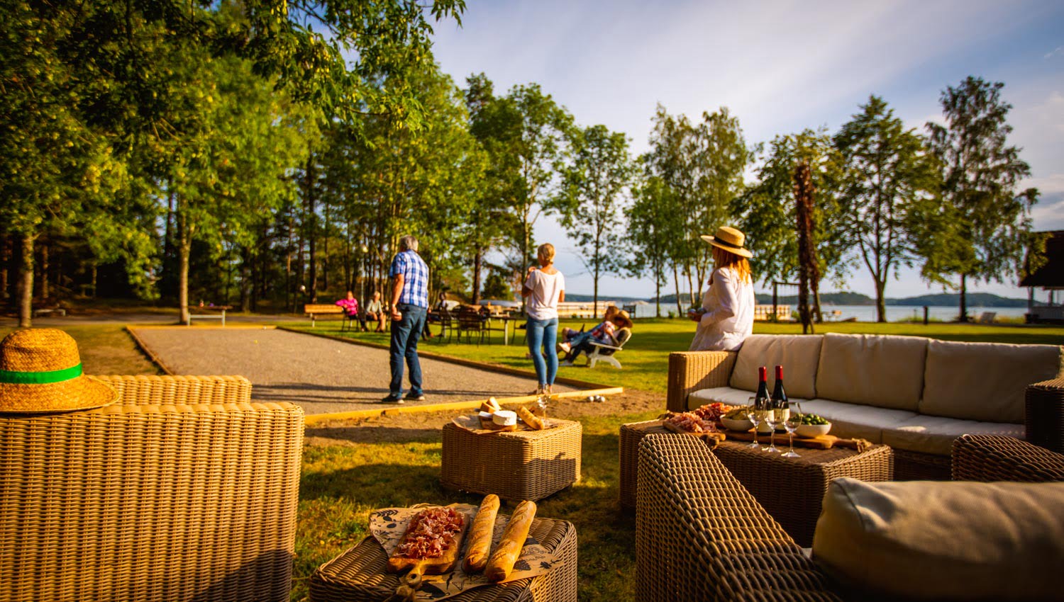 Eftermiddagen bjuder på utomhusaktiviteter såsom beachvolleyboll, boule, brännboll eller varför inte ett dopp i havet.
